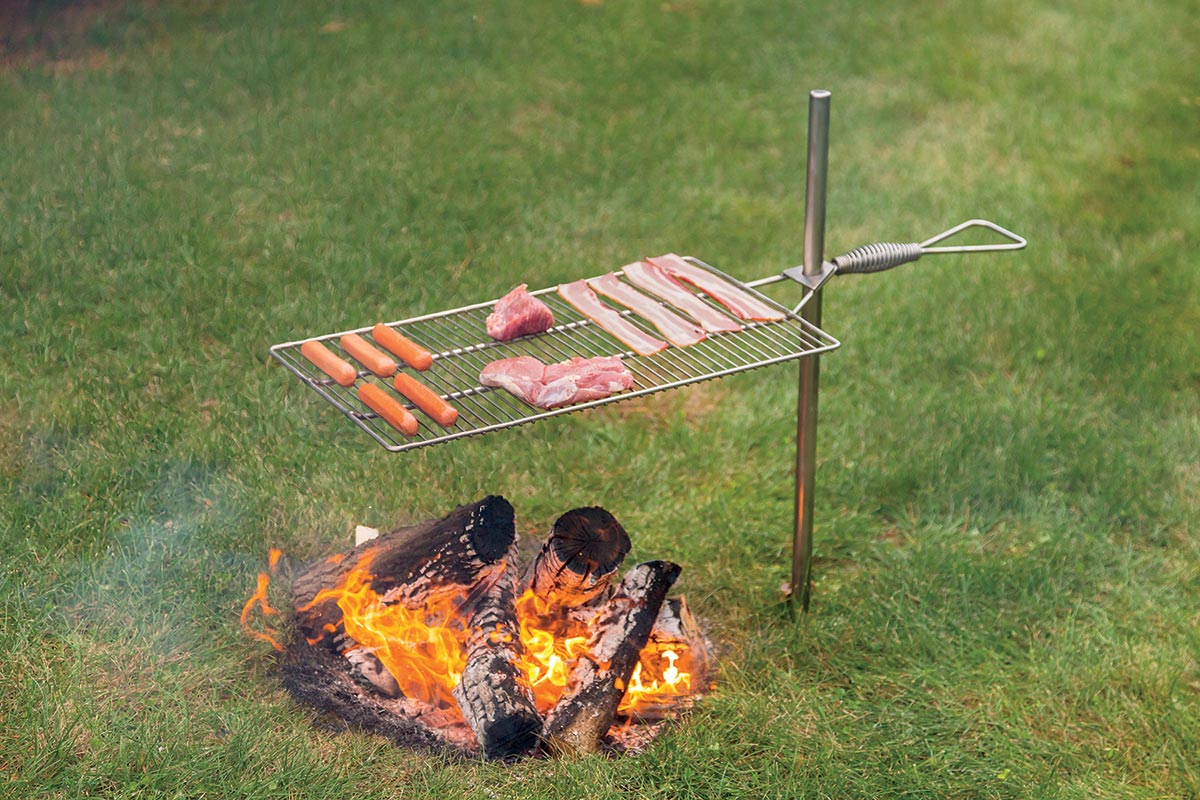 Portable, simple, and ready to go. The "minimalists' heavy-duty stove" will have you cooking naturally over a fire in no time. Prepare a nice bed of coals, set the Lumberjack Over Fire Grill on top and you can cook steaks, chicken, or burgers directly over the fire. Or use a Camp Chef Lumberjack Skillet and fry up a hearty breakfast. Folding legs make for easy transportation and compact storage. Made of steel for a strong and durable life.