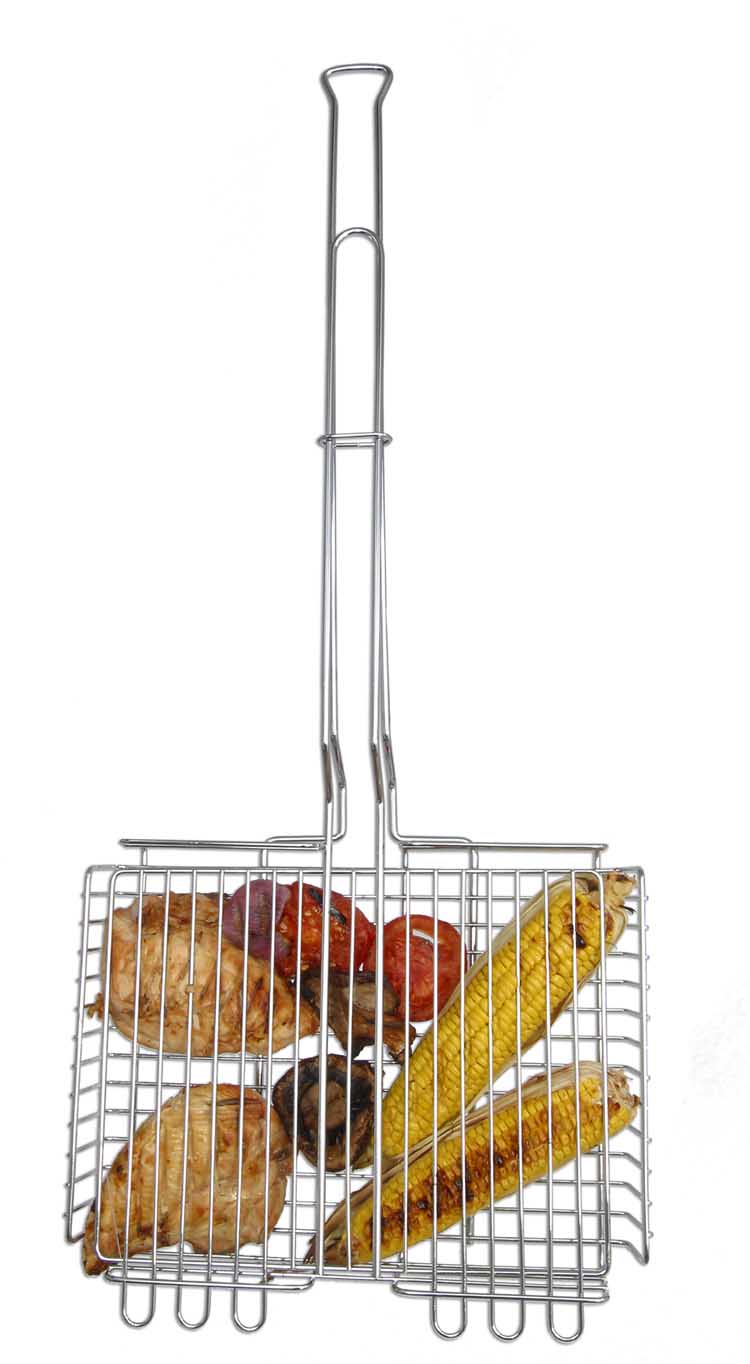 Unlimited height adjustment, Full 360 degree rotation, Nickel-chrome finish is safe for all foods, Mesh surface prevents food from falling through grill, Excellent as a cooking surface for pans & kettles, Stores easily.