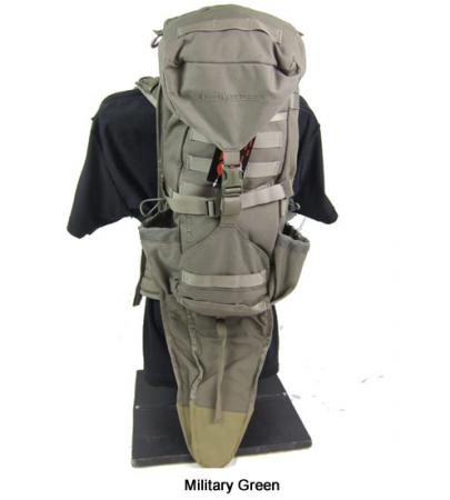 The H2 Gunrunner is a minimalist, lightweight rifle pack that's designed for hands-free hunting and quick access to your rifle. It gives you just the right amount of stowage for personal gear for a day's outing. The top compartment is a good size for range finders, calls, etc., and the main compartment is sized for a day's worth of food and clothing. It is hydration compatible (hydration sold separately). The pack has crossed vertical and horizontal compression straps, which are useful to grapple things to the pack, and a stowable waist belt for stabilizing the load when you're moving fast. 1400 cu.in.