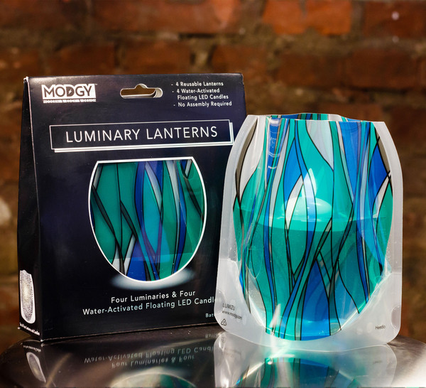 Modgy Luminary Lanterns set the mood in any space with the addition of water and water-activated, floating LED candles. These durable, plastic luminaries feature modern, graphic designs and are suitable for indoor and outdoor use. Modgy luminaries compliment an elegant wedding, trendy dinner party or relaxed patio gathering and are also perfect for every day living. Modgy Luminary Lanterns will not break or chip and eliminate concerns about fire hazards due to the use of flameless, floating candles.