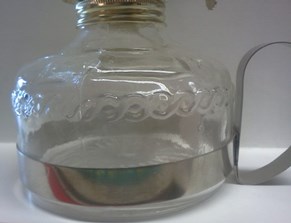 Oil lamps burning lampoil using a wick. These are great to have around in case of a power outage.