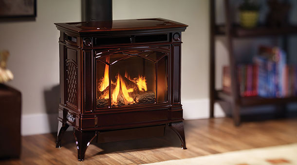Compact Elegance. Even your smaller living areas can be transformed with the timeless beauty of durable cast iron Small Hampton Gas Stove. The 18,000 BTU of high efficiency heat can be turned down a full 50% so that you can enjoy the beautiful glow without all the heat.