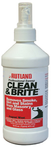 A spray-on liquid to remove creosote, dirt and stains from masonry and glass without hard rubbing. Clings to vertical surfaces and does not scratch. For professional use only.