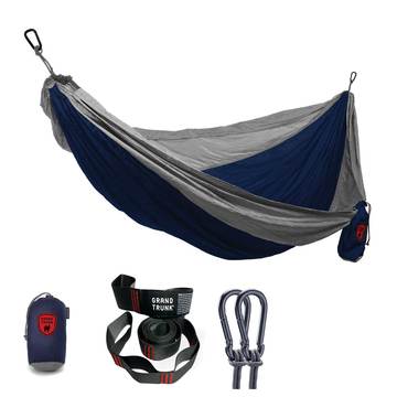 Double Deluxe Parachute Nylon Hammock w/ Straps - Navy/Silver