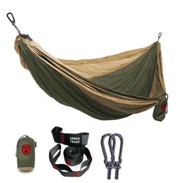 Double Deluxe Parachute Nylon Hammock w/ Straps - Olive/Khahi