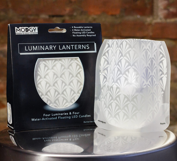 Modgy Luminary Lanterns set the mood in any space with the addition of water and water-activated, floating LED candles. These durable, plastic luminaries feature modern, graphic designs and are suitable for indoor and outdoor use. Modgy luminaries compliment an elegant wedding, trendy dinner party or relaxed patio gathering and are also perfect for every day living. Modgy Luminary Lanterns will not break or chip and eliminate concerns about fire hazards due to the use of flameless, floating candles.