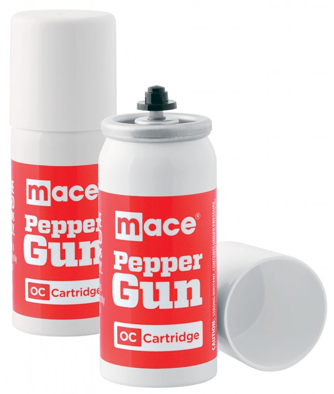 Mace Pepper Guns are easy, quick, and safe to reload with pre-filled replacement cartridges. Refill cartridges are sold in convenient 2-packs